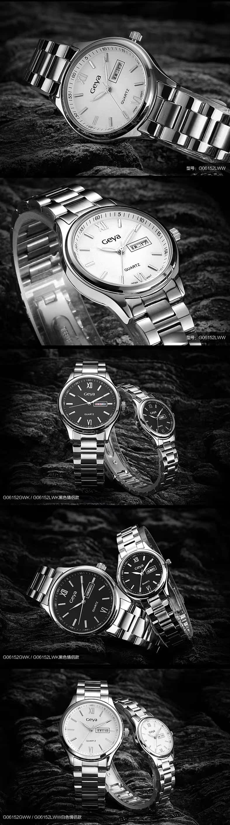 Geya格雅 石英情侶手表男女夜光雙日曆情侶對表男表女表6152 - 43877611296